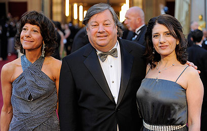 קרן טל (מימין) מתלווה לסיימון וגודמן בטקס (צילום: AP)
