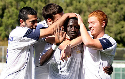 שחקני רעננה חוגגים את שער היתרון (צילום: דרור עינב)