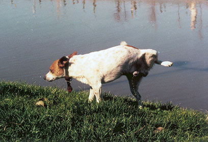 באירוניה קלאסית של חיי כלב, פ' היה פעם תותח באקרובטיקה רצונית. כשאני מריץ בראש את קליפ הרגעים הגדולים שלו צצות לצד הבוקר ההוא בבניאס גם הריצות הפסיכיות שהוא היה מרביץ על ה־ר' של הספה בחדר האורחים של הורי, עם תאוצות וזוויות של מוטו GP. או הקפיצות האנכיות שהוא היה דופק כדי להגיע לפרוסת נקניק, זינוקים שלצד הכתמים הג'ינג'יים על הפרווה הלבנה הם הסיבה העיקרית לחשוב שהוא ג'ק ולא פינצ'ר.