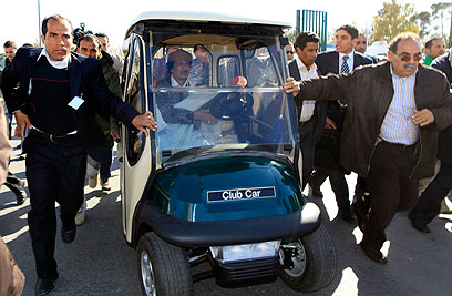 ידבר עם המורדים? קדאפי מפגין שליטה ברכב גולף בטריפולי (צילום: רויטרס)