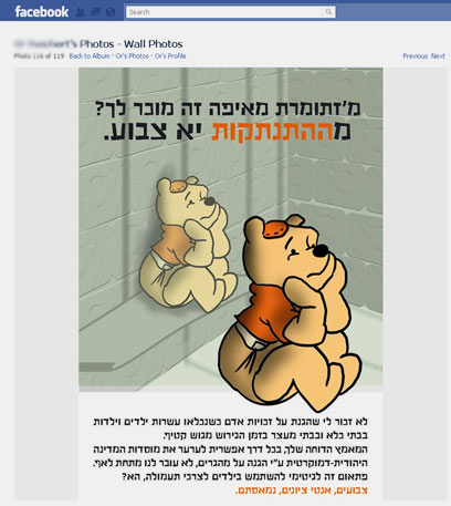 יגאל שתיים פרסם כרזה לקראת ההפגנה נגד מתקן הכליאה לילדי הזרים השוהים בישראל בניגוד לחוק. מעל תמונה של פו הדב שאזוק למשקולת נכתב: "כליאת ילדים, מאיפה זה מוכר לי?". אור רייכרט הגיב בכרזה נגדית, שבה פו הדב חובש כיפה כתומה, ומעליו הכיתוב: "מ'זתומרת מאיפה זה מוכר לך? מההתנתקות יא צבוע".