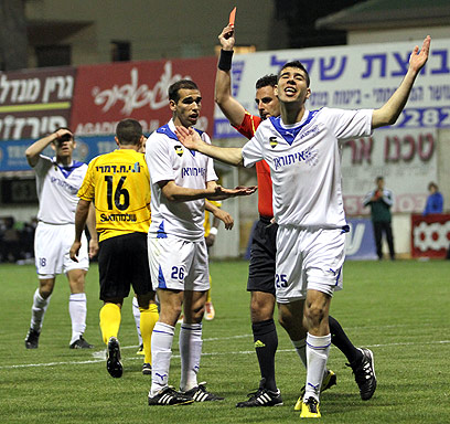 איתן טיבי סופג כרטיס אדום (צילום: עוז מועלם)