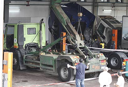 שוב תאונה עם משאית אשפה: גבר בן 43 נהרג בצהריים (יום א') מנפילת מנוף של משאית לפינוי אשפה, במוסך באזור התעשייה בקריית אתא. מדובר במשאית השייכת לעיריית חיפה. צוותי מד"א קבעו את מותו של האיש ופינו פצוע בן 24, שמצבו קשה, לבית החולים.