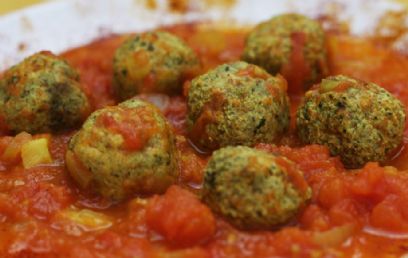 קציצות סרפד ושקדים ברוטב עגבניות (צילום: אבישג שאר ישוב)