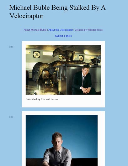 מייקל בובל הוא זמר ג'ז מפורסם. ולוסירפטור הוא זן מפורסם של דינוזאור. מה היה קורה אם הוולוסירפטור היה אורב לבובל בכל מיני אירועים מחיי היומיום ובהופעות? בטאמבלר הזה מייק אוסף פוטושופים שיצרו הגולשים הנאמנים שממחישים בדיוק את זה. הנושא והסגנון של הטאמבלר קצת מזכיר לח"מ יצירה ישראלית מפורסמת, צב אוכל פירה.