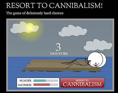 אתם תקועים על רפסודה בלב ים עם חבר. נשאלת השאלה: מתי הזמן הנכון לאכול את החבר? המשחק שלפניכם דן בשאלה עתיקת היומין הזו. Resort to Cannibalism הוא משחק של תזמון: תנסו לאכול את חברכם מוקדם מדי - והוא ירה בכם. תחכו יותר מדי זמן - והוא יאכל אתכם קודם. אפשר לראות במשחק הכנה למצבי אסון. למרות הכל כיף לקבל את הכותרת "Cannibalism Achieved" כשאתם מנצחים.