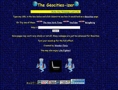 הגאוסיטיסייזר הוא אתר משעשע שיקח כל אתר שתתנו לו וילכלך אותו כאילו היה בנוי בגאוסיטיז. אם אתם לא זוכרים את גאוסיטיז, מדובר בשירות של יאהו! שאיפשר לכל אדם, סבתא ומתפרה לפתוח אתר אינטרנט בלי ידע או ניסיון קודם. בגלל הפשטות של השירות ובגלל ארסנל מאוד אינפנטילי של כלי עיצוב כל אתר היה מתאפיין ברקעים מזעזעים, אנימציות GIF מעצבנות, טקסטים זוהרים מרצדים בפונט Comic Sans ותמונות של דובוני איכפת לי.