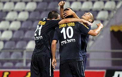 מכבי פ"ת חוגגת עם עומר דמארי. החלוץ כבש שער מהיר (אורן אהרוני)