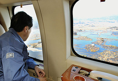 "לא כמו בצ'רנוביל". ראש ממשלת יפן קאן מעל אזורי האסון (צילום: AP)
