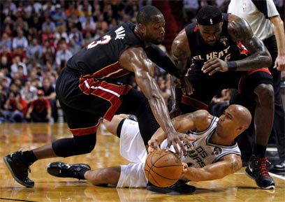 לברון ג'יימס הסתפק ב-21 נק', שמונה אסיסטים ושישה ריב' עבור ההיט, שצמצמו את הפער מבוסטון ושיקגו בראשות המזרח לשני משחקים בלבד. טוני פארקר הוביל את קלעי הספרס עם 18 וחמישה אס', טים דאנקן סייע עם 14 ושישה ריב'.