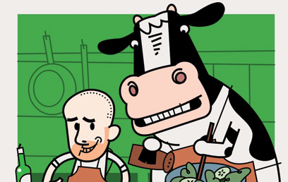 אגב, לתגובה השנייה הזאת יש גם גירסה הפוכה. מישהי סיפרה לי שיש רבנים הדורשים שצמחונות היא דרגה מוסרית נעלה יותר, שאנו כאנושות עדיין לא אמורים להגיע אליה: קודם עלינו ללמוד להתנהג בהגינות כלפי בני אדם אחרים. הבחורה הזאת המשיכה לספר לי שכדי לחסוך סבל מבעלי החיים, היא אוכלת אך ורק בשר כשר. טוב, זה ידוע שבשחיטה כשרה אין כאב. רק חזירים מרגישים כאב. הפרות שמחות נורא - למעשה הן מתנדבות - להישחט. רק מה, הן בפירוש לא מוכנות שישימו עליהן גבינה. לא, זה כבר מעליב אותן.