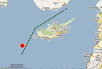 מטורקיה למצרים. נתיב הספינה (www.marinetraffic.com)