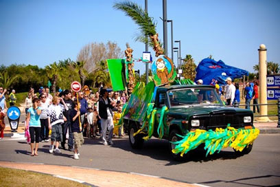 החגיגה המשפחתית נערכת בין 13:00 ל-16:00 ובמסגרתה מתקיימות מגוון פעילויות ירוקות כגון פיסול מחומרים ממוחזרים, הצגת ילדים נושאת מסר ירוק, בנייה באדמה, יצירת תחפושות מחפצים משומשים, "שוק בשקל", הדרכת קומפוסט, יריד איכרים ואמנים מקומי וירוק וציור על קירות הבתים לשיפור מרה השכונה. החל מהשעה 16:00 קרנבל פורים נכנס לשכונה ומתחילה מסיבה שבה שתי עמדות די.ג'יי, תהלוכת תחפושות בנושא שימור הסביבה ותחרות תחפושות. להטוטנים מסתובבים ברחוב, ומופעל מתחם קולנוע סביבתי.