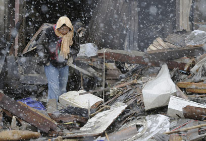 אתמול דיווחה התקשורת ביפן כי לפחות שני בני אדם חולצו בחיים מבין ההריסות, יותר מ-72 שעות אחרי רעש האדמה והצונאמי. אלא שאנשי החילוץ הזהירו היום כי השלג מפחית עוד יותר את הסיכוי הקטן מאליו לאתר ניצולים נוספים. "השלג פשוט כיסה את השטח. אפשר לראות רק למרחק של 40 מטרים", הסביר פטריק פולר מהצלב האדום הבינלאומי, במה שנותר מכפר הדייגים הקטן אוסטוצ'י. "אנשים עדיין עובדים, הצבא נמצא שם, אבל שירותי הכבאות נסוגו מחשש שהם לא יוכלו לשוב לבסיס האם שלהם בשל השלג".