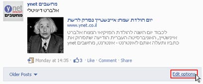 - בעמוד הבית של פייסבוק, גללי מטה עד שתראי בתחתית העמוד מימין את הלינק "Edit Options" ולחצי עליו