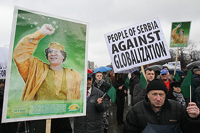 גם בסרביה מתנגדים לפעולות המערב בלוב. בלגרד, היום (צילום: AP)