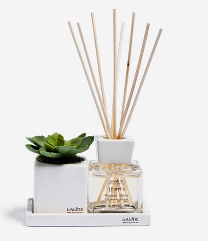 לרשת ל'אוקסיטן יש הום דיפיוזר בצורת כלי זכוכית אלגנטי (שמזכיר כלי זכוכית מקריסטל של פעם) עם 15 מקלות עץ ומחירו 90 שקל. תמצית הבושם מגיעה בריחות שונים ונמכרת בנפרד במחיר 60 שקל. לצד הוניל, פצ'ולי והלבנדר המסורתיים לל'אוקסיטן יש שני ריחות ייחודיים שאני מתמוגגת מהם בכל פעם מחדש: תאנה (לחובבי ריחות מתוקים) וניחוח נוף הפרובאנס, שם מפוצץ לריח של פריחה וטבע.