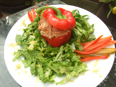 - הגשה: אפשר להגיש במגוון דרכים, למשל לגלגל לכדורים או למלא בפלפל, כמו בתמונה.
