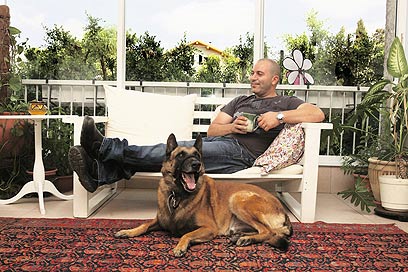 ליאור רז, תופס שלוה עם חבר טוב במרפסת. צילום: תומי הרפז