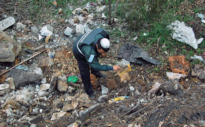 מחפשים אחר שרידי הרקטה בשדרות (צילום: זאב טרכטמן)
