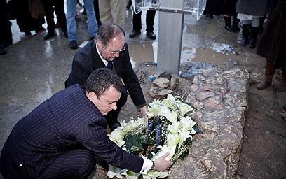 השגריר מניח זר בזירת הפיגוע (צילום: נועם מושקוביץ)
