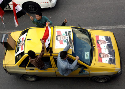 "אוהבים אותך בשאר". תומכי אסד בבירה דמשק (צילום: AP)