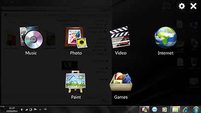 ברגע שהמחשב עובר למצב טאבלט, מופעל Stage, שולחן עבודה ליישומי מגע. יש לו אייקונים גדולים וקישורים למספר יישומי מולטימדיה (עליהם נרחיב בהמשך). המסך הקפסטיבי מזהה בצורה טובה גם מגע, וגם מחוות מולטי טאץ' כמו צביטה לתקריב בתמונה ועוד. זיהוי התנועה חלק מאוד: שיחקנו עליו את גירסת הפי.סי של אנגרי בירדס, ולא נתקלנו בבעיות ממשק. חבל שאין למחשב תמיכה גם בסטיילוס - דבר שיכול להיות שימושי מאוד עבור סטודנטים, למשל (לא רוצה להקליד בשיעור? פשוט תכתוב ותשמור את הקובץ).