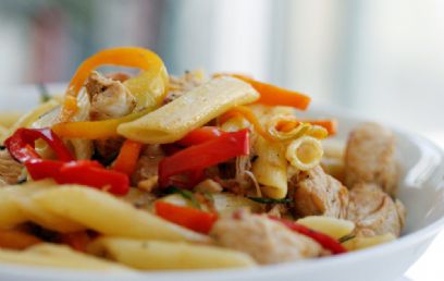 פסטה, עוף ופלפלים (צילום: מיכל וקסמן)