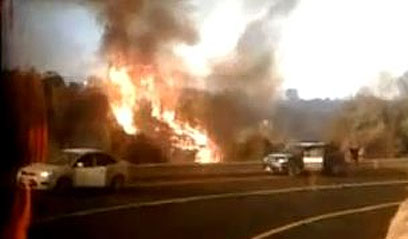 "שבו כבר. אתם מפריעים לנהג", נשמע קול אחר - בזמן שהנהג ניסה לעשות פרסה, בכביש ליד בית אורן, לאחר שהדרך נחסמה בשל הלהבות.