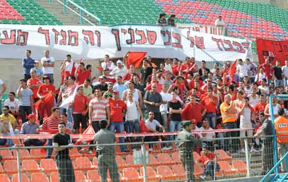 אוהדי סכנין. הקבוצה נקנסה בגללם (צילום: אביהו שפירא)