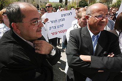 רוצים ועדה אובייקטיבית. חברי הכנסת טיבי וא-סאנע בהפגנה