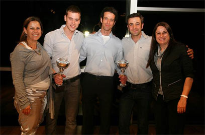 שלושת הזוכים עם רונה רמון והשופטת דלית לאופר (צילום:פרי מנדלבוים)