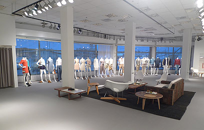 עיצוב וסדר: החנות בנויה כלופט בעל חלל אחד גדול, עם רצפה מוחלקת אפורה ופרטי ריהוט על טהרת הרטרו, המשמשים כסטנדים לפרטי הלבוש השונים. בחלל מוצבים קולבים לגברים ולנשים המציגים פרטי לבוש באופן מאוד לא עמוס ונוח להתרשמות. במרכז החנות מראת גוף גבוהה עם מסגרת מוזהבת, לצידה ממוקמים ארבעה תאי מדידה מאובזרים אף הם במראת גוף, כל אחד ובמתלי ניקל.
