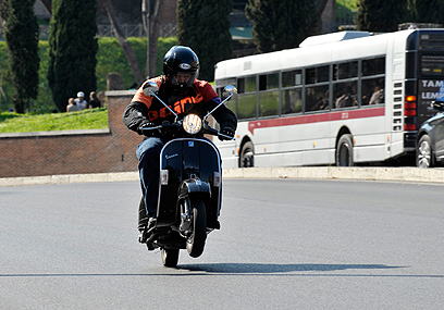 פיאג'ו היצרנית בחרה ברומא כאתר אידאלי להצגת ה-PX המחודשת, ואי אפשר כמובן להאשים אותם. הווספה פורטת היטב על מיתרי נוסטלגיה איטלקית, ואם ההופעה נערכת על רקע הקוליסאום, מה טוב. הארגון היה אף הוא איטלקי למהדרין, ולכן בקושי הספקנו לרכב על הכלי.