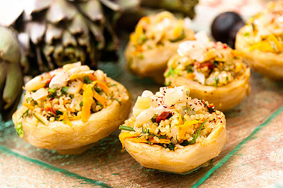 תחתיות ארטישוק ממולאות בקינואה ברוטב חמצמץ (צילום: ירון ברנר)