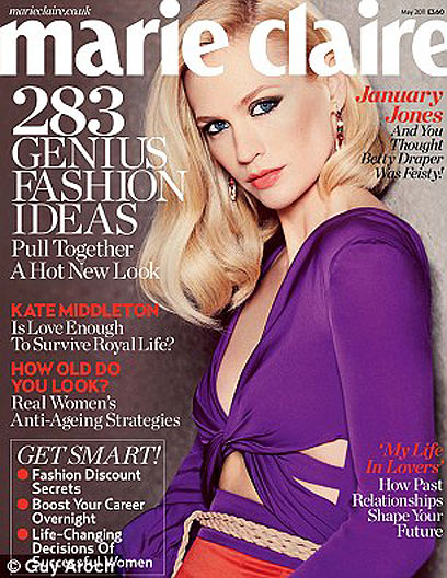 מתנה לחודש מאי. ג'נוארי ג'ונס, בטי דרייפר מהסדרה "מד מן", הנחשבת לאחת השחקניות היפהפיות המסתובבות על המסך, הצטלמה לכתבת אופנה בהשראת שנות השבעים למגזין "מארי קלייר" הבריטי. את ג'ונס צילם גיא ארוך, צלם האופנה הישראלי לשעבר, המתמחה בצילומי סלבריטאים. תמונות מדהימות עם גאווה ישראלית.