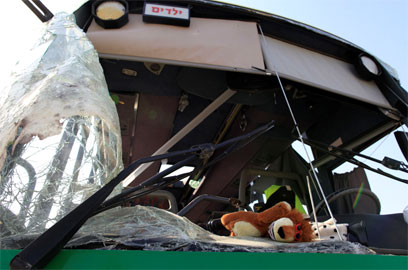 האוטובוס שנפגע. "אווירה לא נעימה" (צילום: צפריר אביוב)