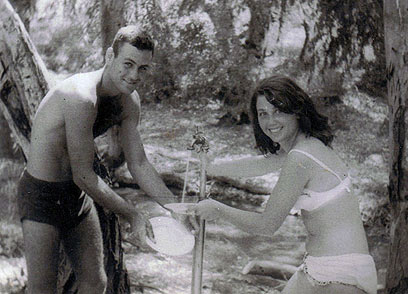 אני בת 65, מעצבת ומורה בדימוס. קובי בן 67, אנחנו חיים ועובדים יחד בראשון לציון. הכרנו באוגוסט 1965, כשנשלחתי לשבוע עזרה במשקים לקיבוץ חפציבה, במסגרת השבוע האחרון של הטירונות. ביום האחרון לשהותנו בקיבוץ נערך פיקניק בכנרת, עם בני המשק. אכלנו צהריים, וכשביקשו מתנדבים לשטיפת כלים, קובי הקיבוצניק זרק את שמי. כיוון שכך, צירפתי אותו אליי לעזרה. צילמו אותנו (ראו תמונה למטה), והתמונה היתה הסיבה שלו שנחליף כתובות, כדי לשמור על קשר. השאר כבר היסטוריה.