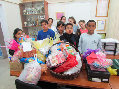 הילדים והחבילות שהכינו לחיילים מ"כיפת ברזל" (צילום: רן ידעי)