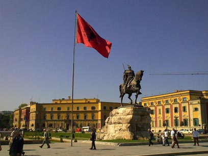 במשך שנים, מניף את חרבו אל מול הפסיפס המרהיב שעל חזיתו של המוזיאון הלאומי. הפסיפס מתאר את מלחמותיהם של האלבנים לאורך השנים מול ערב רב של כובשים שבאו מרחוק ומקרוב אל המדינה הקטנה היושבת על שפת הים האדריאטי.
