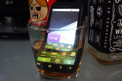 הסמארטפון הממוצע לא אוהב מים. לפעמים גם טיפה אחת שחדרה לבטן המכשיר גורמת לחלודה ומשביתה אותו. לפי מוטורולה, הדיפיי עמיד בטבילה במים עד עומק של מטר. לדעתנו, תרחיש בו סמארטפון יפול למים הוא קצת בידיוני, ולכן טבלנו אותו בכוס ג'ק דניאלס בפאב הבית של ערוץ המחשבים.
