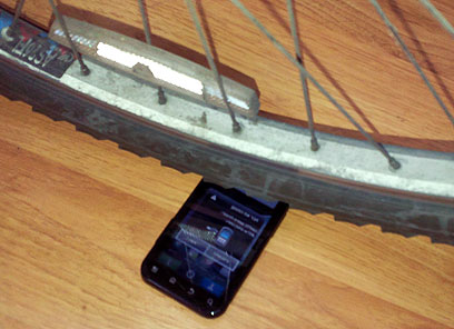 מכשירים סלולריים נופלים מהידיים כל הזמן כששולפים אותם במהירות מן הכיס או מניחים אותם קרוב מדי לשפת השולחן. הדיפיי אמור לפעול ללא נזקים גם אחרי נפילה מגובה של מטר. אירגנו לדיפיי סדרה של הפלות; לאחר מכן השלכנו אותו, ללא תנופה, ברחבי המעבדה של ערוץ המחשבים. הוא שרד את כל ההתעללויות - ואז הרגשנו לא נעים, אז ניחמנו אותו בטיול אופניים. הטלפון עבר ללא פגע גם את הדריסה.