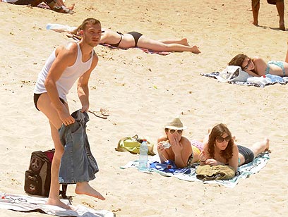 זהבי, שהגיע אל החוף לבדו, רכוב על האופניים, דפק שם מופע סטריפטיז והציג את מראהו החטוב. המשתזפות לא נשארו אדישות והעיפו מבט לכיוון. או יותר נכון, הזילו ריר ונתנו לדמיון לעבוד שעות נוספות. הקיץ כבר כאן, ומציג: לא רק ביקיני.