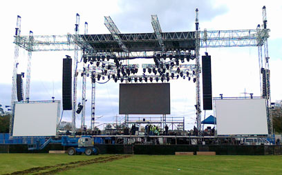 ההכנות בעיצומן: במת ההופעה של ביבר בפארק (צילום: עמית קוטלר)