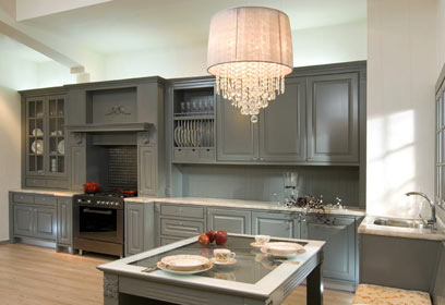 רומנטי - קווים מסוגננים ושימוש בחומרים מסורתיים כעץ, בשילוב צבעי פסטל ואביזרי פרזול עם פיתוחים, מוסיפים מימד של חמימות ורומנטיות למטבח. נברשת מהודרת מאירה את החלל באור יקרות ומוסיפה לו טאץ' אלגנטי ומרשים.