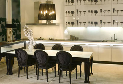 דרמטי - ניגודיות חזקה בגווני המטבח תהפוך אותו לחדר שלא ניתן להתעלם ממנו. משחק בגוונים חזקים של שחור ולבן מוסיף עניין למטבח ומעניק אשליה חזותית של גובה ועומק.