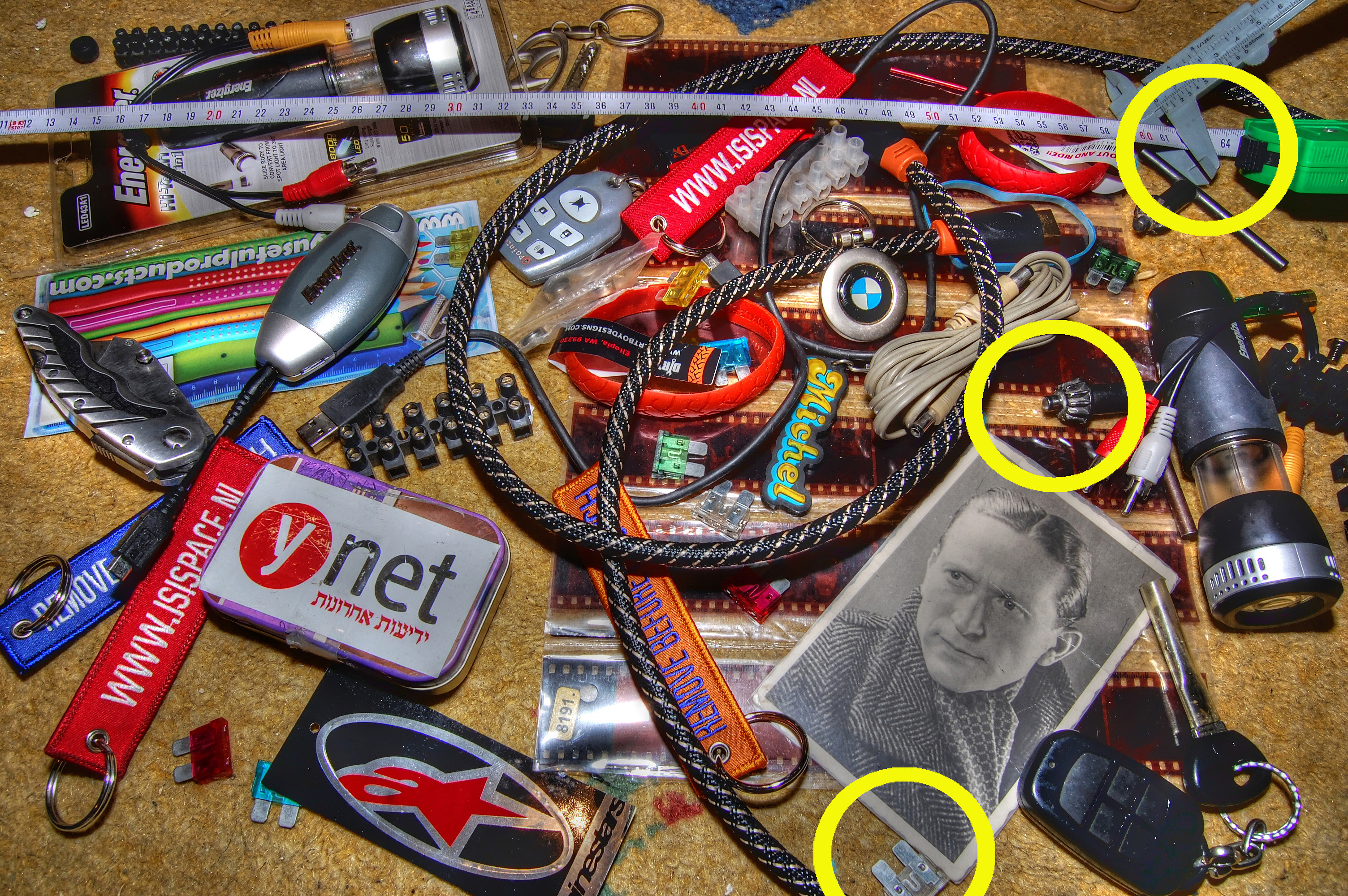 המדור הפעם מוקדש לאלון וינוגרדוב בן ה-17 שעמל כל שבוע בשקדנות על החידה הקודמת, ומשום מה לא מצא את השינויים שכולכם מצאתם ללא יוצא מן הכלל. מה ששיניתי היה הפין של מפתח המקדחה, הנתיך של המכונית קיבל רגל שקופה והספרות על ה"מטר רץ". אגב, מהיום אני מעלה את התמונה המקורית לפני השינוי כך שתוכלו לראות מה עוללתי.