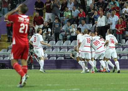 הפועל תל אביב חוגגת, 30 שניות ושער. ניצחון איטי (צילום: עוז מועלם)