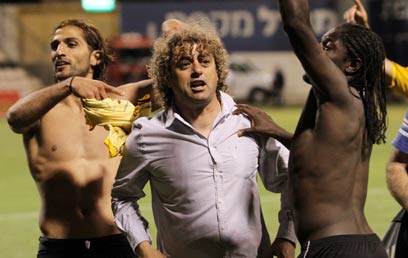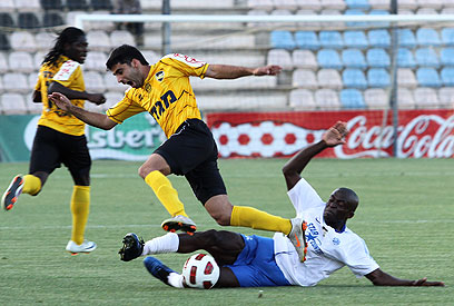 קובי דג'אני ומכבי נתניה על הגובה (צילום: עוז מועלם)
