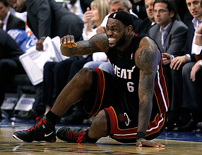 לברון נפל, אבל מיאמי ממש לא על הקרשים (צילום: AP)